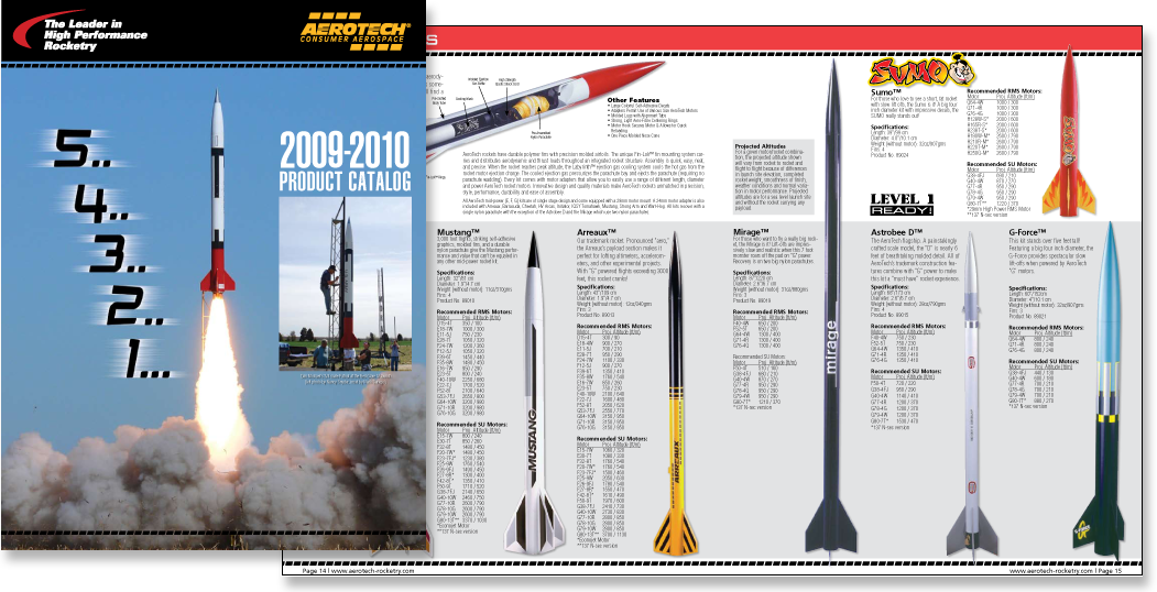 This 20 page catalog has dozens of technical rocket motor thrust curves, requiring a tremendous amount of work in Adobe Illustrator. In addition, product data tables present a challenge of including a huge amount of data in a small space. Click on the thumbnail image for a larger version.