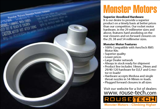 Rouse-Tech manufactures high power rocket motor hardware. They requested a slick ad to promote their anodized aluminum products in trade magazines. Click on the thumbnail image for a larger version.